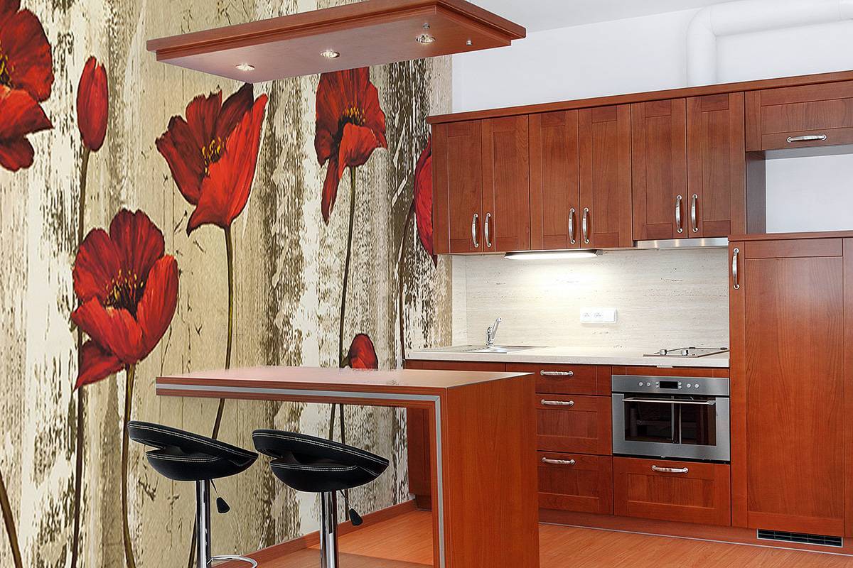 Помните, что фреска в маленькой кухне будет смотреться гармонично только тогда, когда является частью общего оформления: не выделяется яркостью и многообразием цвета, но в то ж время акцентирует внимание и является украшением интерьера