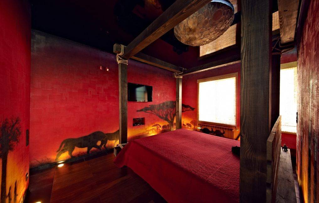 Пробудить аппетит могут африканские мотивы, в которых чувствуется и марокканский стиль. Можно использовать как традиционное искусство, так и изобразить африканские саванны.