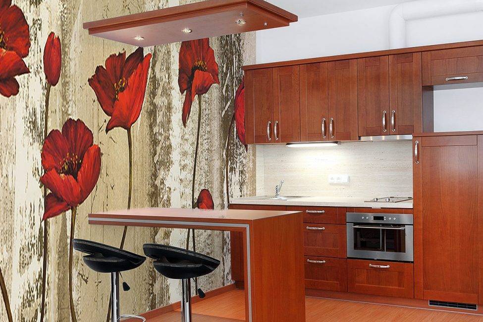 Фреска с маками в дизайне кухни