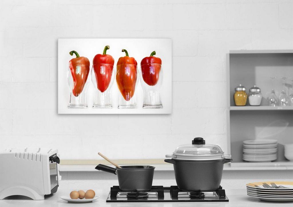 Если у вас вся кухня сделана в белом или сером цвете, добавьте правильных красок с помощью модульных картин с фруктами или ягодами. Вот это правильное изображение для кухни, сочетание сразу двух цветов, красного и зеленого. Повесив такую картину ваша кухня сразу станет интересней, тематика вкусной еды всегда хорошо смотрится на кухне.