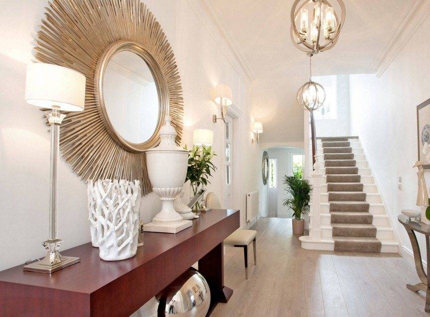 Если Вы хотите подчеркнуть определенный стиль прихожей – Вам поможет специальная тематическая рамка, ограничивающая отражающую поверхность. Для морского интерьера – оформите ее ракушками, состаренная деревянная – навеет прованс, с консолью и подсвечниками – унесет далеко в историю, резная станет классикой, хромированная – дополнит хай-тек, а тонкая или вовсе ее отсутствие укажет на минимализм.