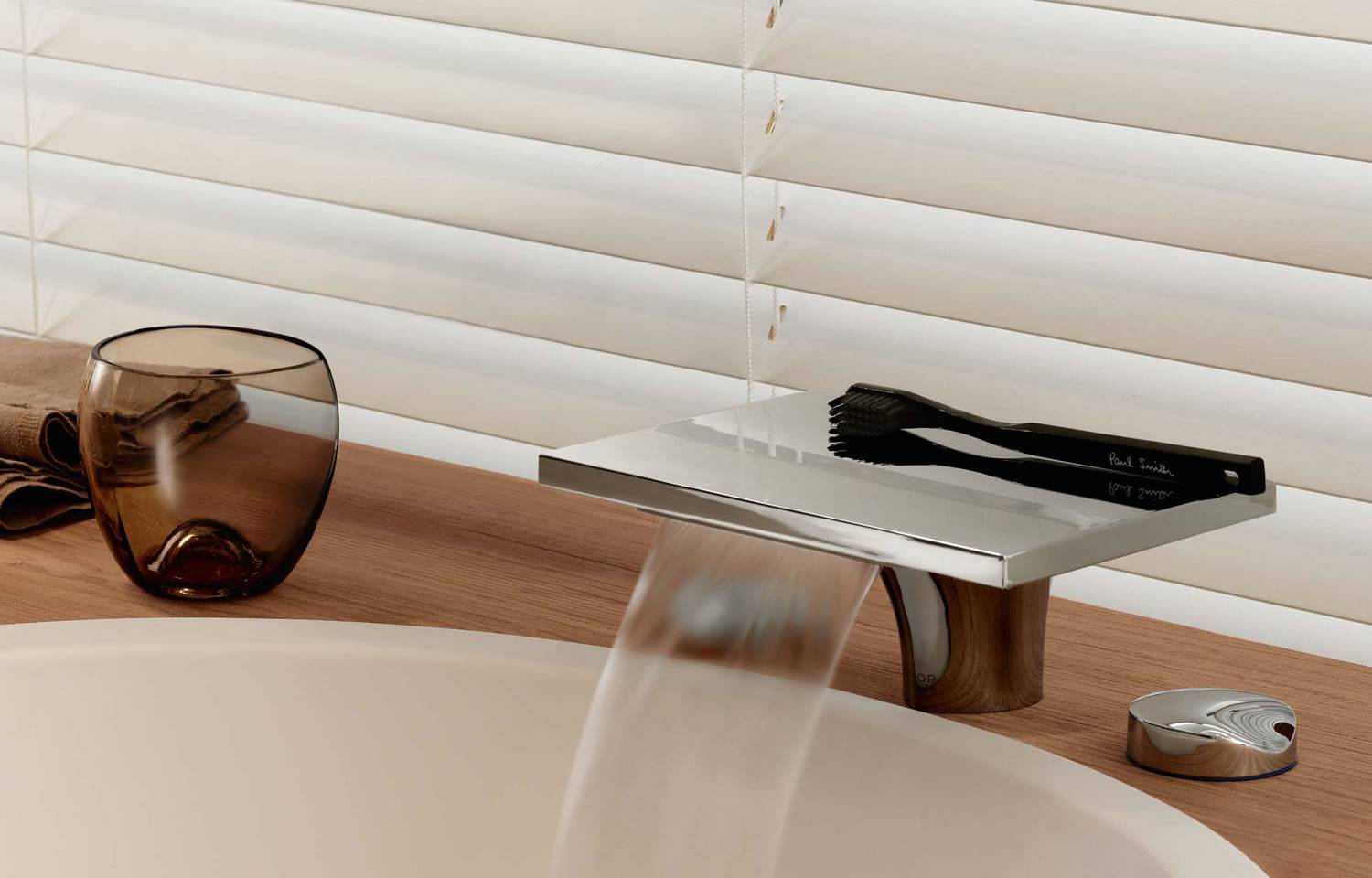 Свежая конструктивная идея подталкивает дизайнеров разрабатывать новые формы смесителя для эффектной ниспадающей струи. Напоминание о живой природе, красоте водопада рождает обновление интерьера ванной комнаты.