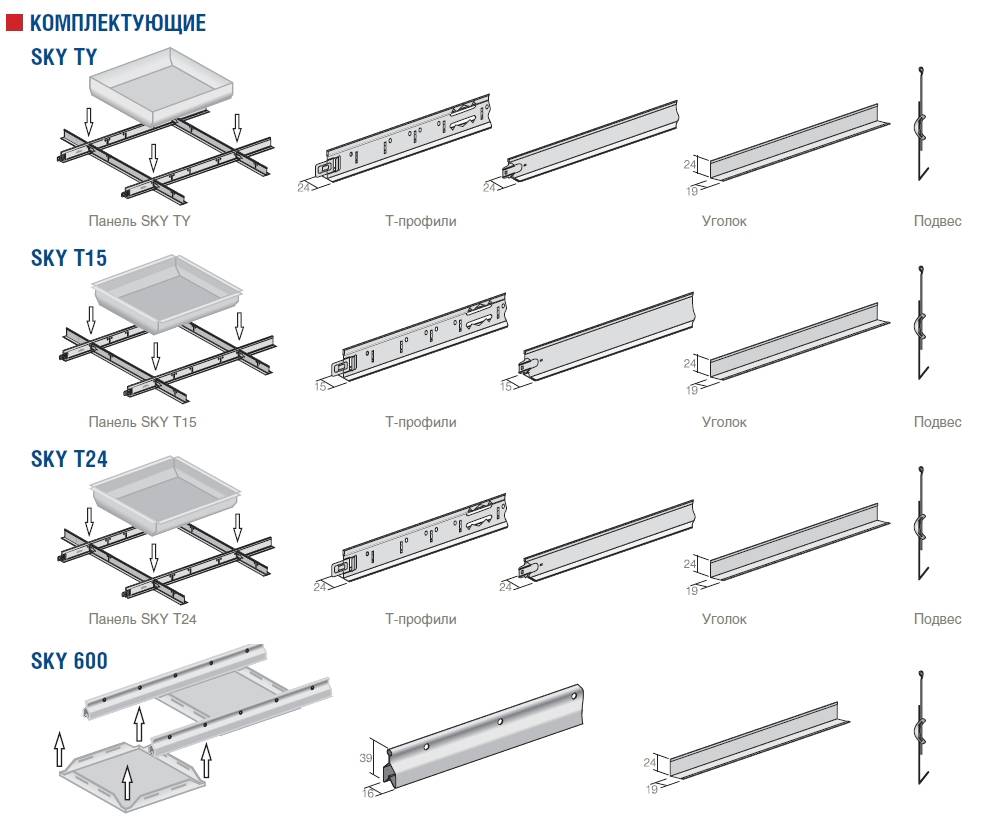 Естественно, понадобится и сам потолок со всеми комплектующими для монтажа.