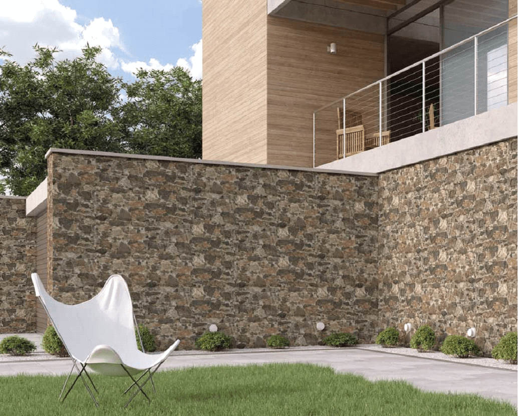 Керамогранит под камень отлично подходит и для внешней отделки фасадов зданий, террас, уличных дорожек. Он способен выдерживать температуру до -50°С и, благодаря отсутствию пор в структуре, выдерживает сотни циклов заморозки/разморозки.