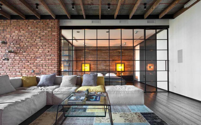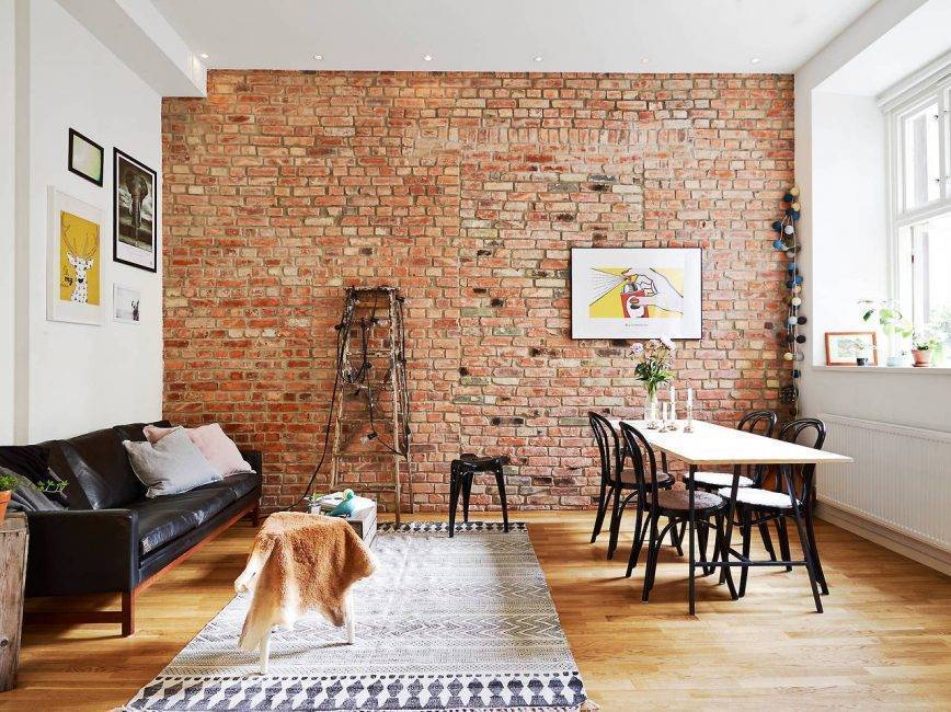 Кирпичная стена посреди комнаты – это настоящая декоративная композиция, которую можно оригинально обыграть, учитывая все особенности помещения.
