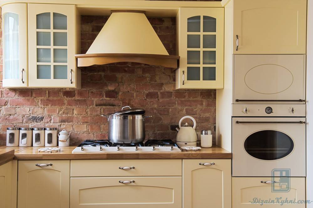 Если кухня имеет малую площадь, дизайнеры рекомендуют использовать другой вариант дизайна, либо выбрать имитацию кирпича. При оформлении стены кирпичной кладкой, желательно поместить материал за стеклом для предотвращения попадания на него жирных капель и воды.