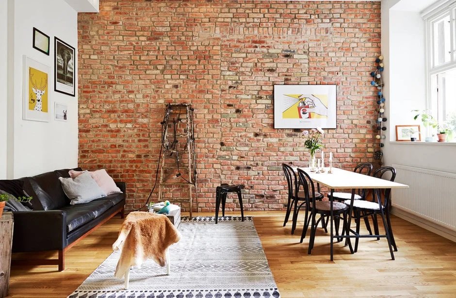 Кирпич в интерьере обычной квартиры придает оригинальность и гостиной, и кухне, и спальне. Это стоит того, чтобы потратить лишние полчаса на уборку.