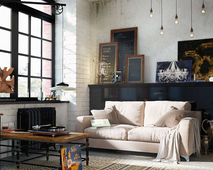Этот стиль при оформлении квартир используется редко — такое направление подходит для больших помещений. Если вы решили создать комнату в подобном стиле, используйте темные или черные обои, чтобы подчеркнуть кирпич.