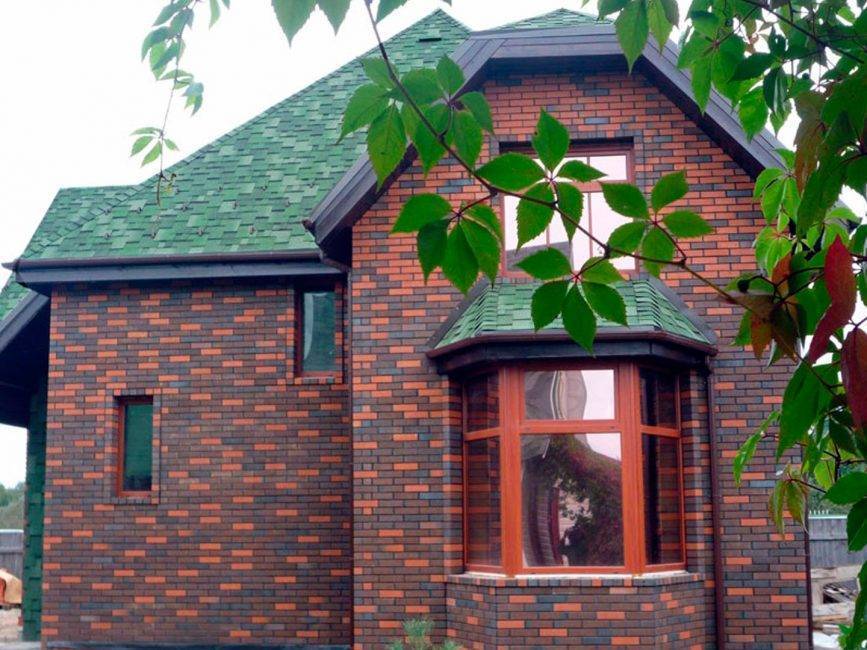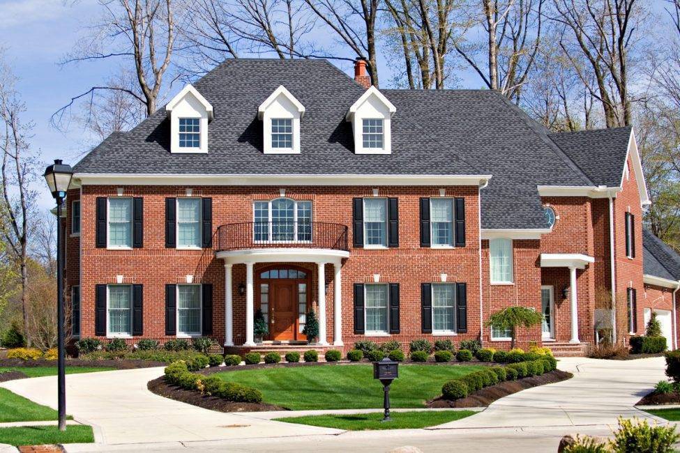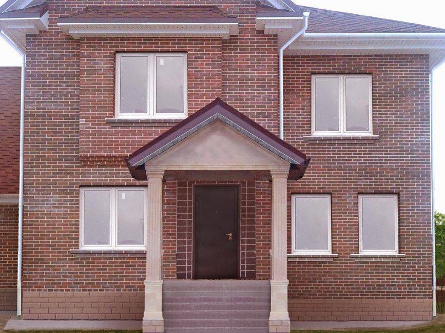 Кровля кирпичного дома по большей части делается из металлической черепицы. Она соответствует стенам по своей стилистике, хорошо удерживается ими, надежно защищает внутренний объем и очень прочна. Классические мотивы в оформлении фасада выражаются при помощи использования колонн и арок. Наилучшую совместимость с кирпичом демонстрируют ЛКМ на основе латекса или портландцемента, но под них должна быть использована грунтовка. Только такое сочетание подходит для длительной эксплуатации.