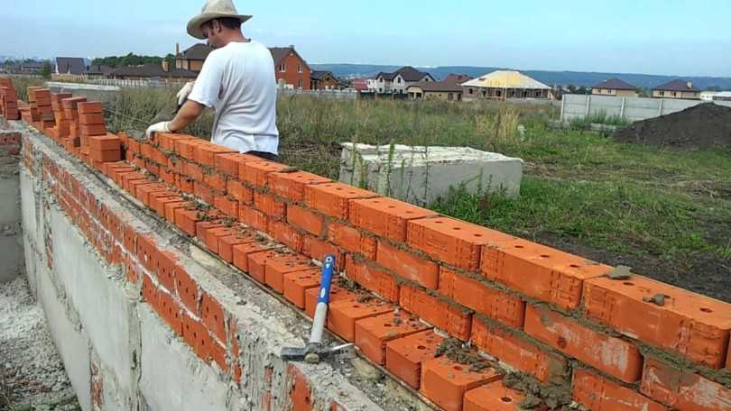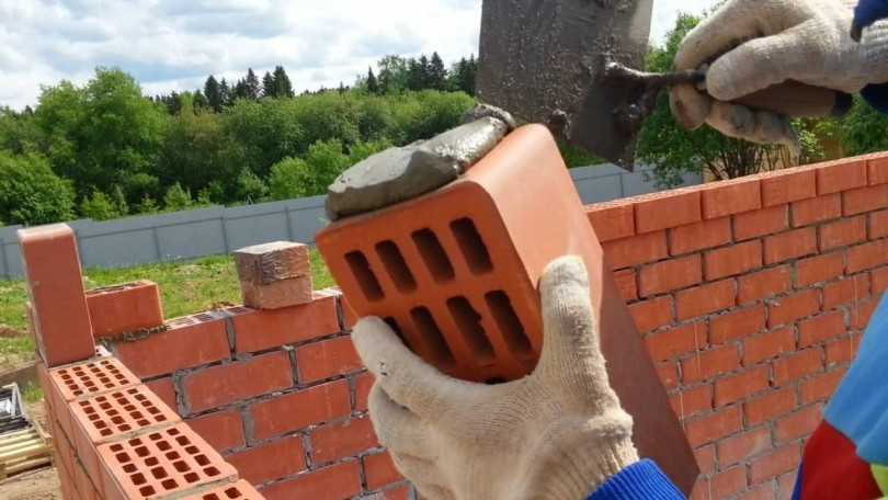 Процесс кладки кирпича