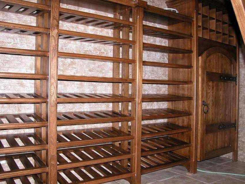 Оборудование будет зависеть от габаритов хранилища и его функционального назначения. Самым рациональным решением в обустройстве подсобного помещения считается установка навесных полок, которые не перегружают и не загромождают пространство