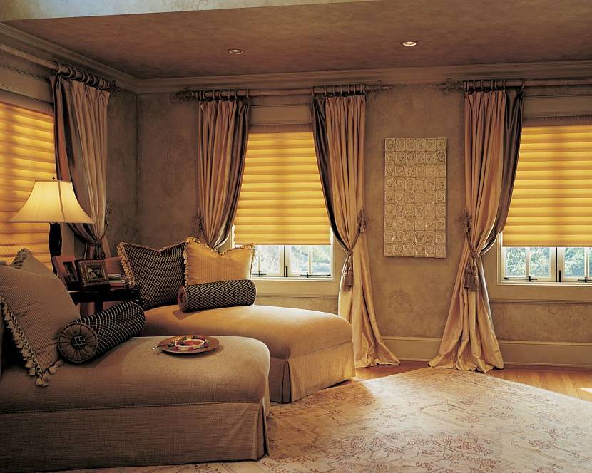 Невозможно представить спальню или гостиную без милых и уютных штор. Элементы текстиля в интерьере делает его более домашним, семейным и благоприятным. Новинкой считаются двойные шторы выполненные из двух видов тканей.