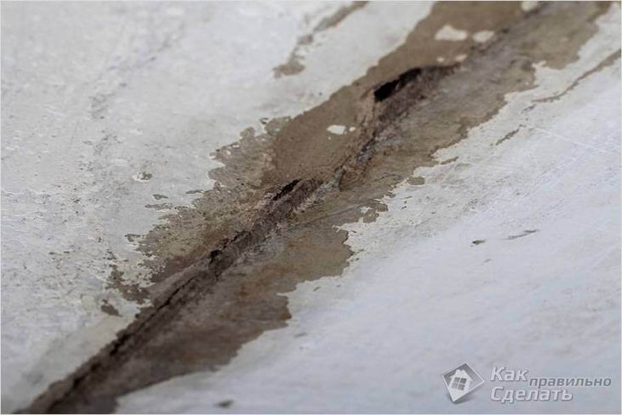 В случае, когда вы имеете дело с голым бетонным основанием, необходимо снять нанесенную штукатурку и загрунтовать потолок.