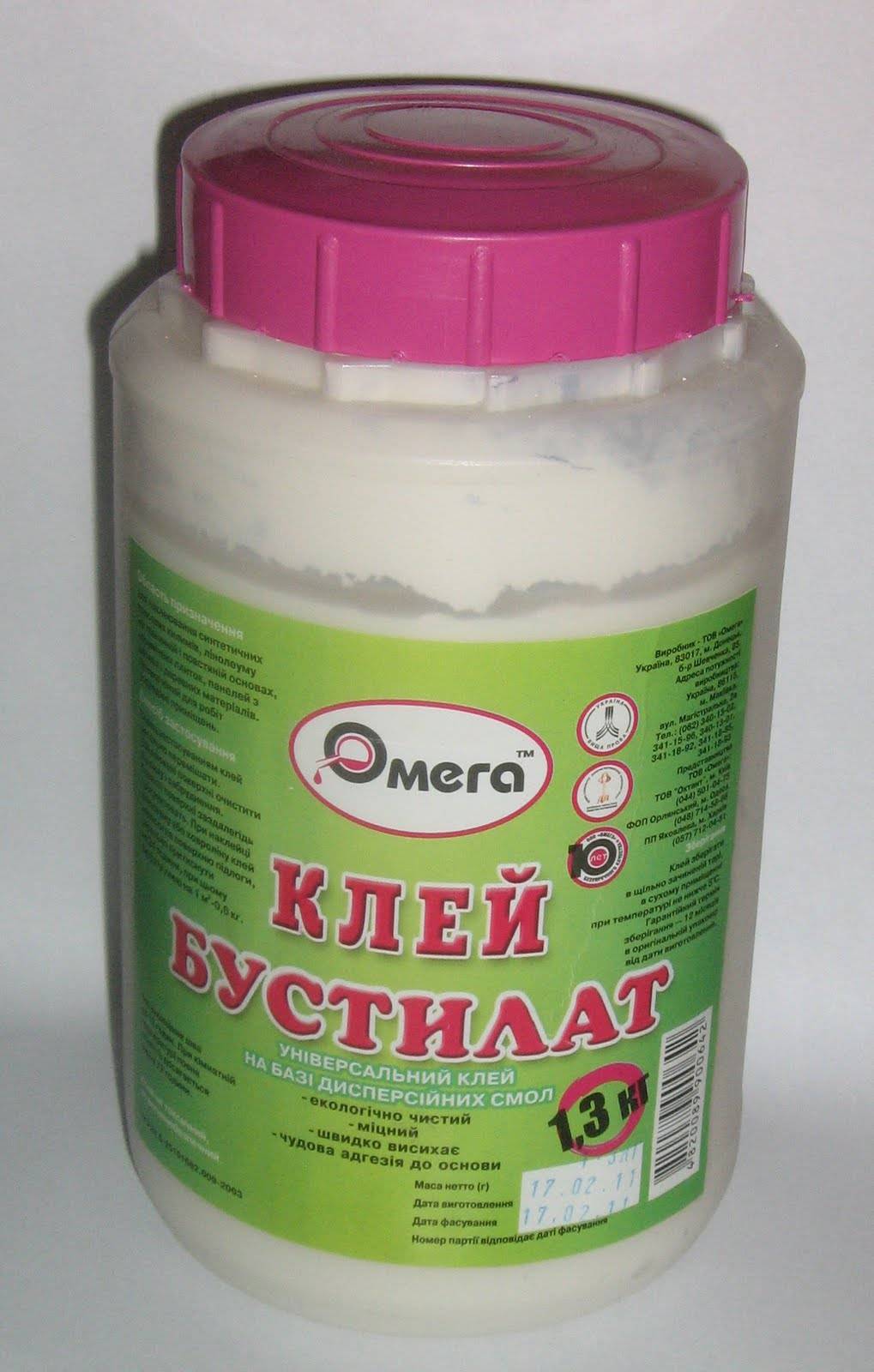 «Бустилат» – универсальный строительный клей синтетического происхождения. Хорошие показатели адгезии и безвредность для здоровья – основные качества, делающие его пригодным для использования внутри человеческого жилья. Клей нельзя эксплуатировать на улице, зато в помещении он применяется для отделки стен, пола, потолка, позволяет надежно закрепить элементы декора и не сверлить лишних отверстий. «Бустилат» – изобретение российских ученых из НИИ «Мосстроя», но сейчас он производится разными компаниями: