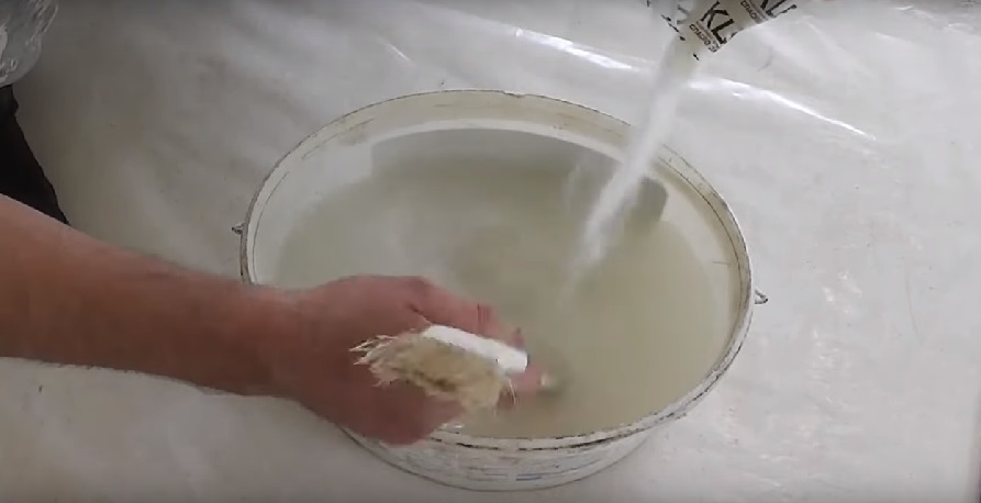 - в специальной емкости, согласно инструкции, разводится клей. Перемешивать его нужно не мене 10 минут, раствор должен быть однородным, без сгустков и комков;