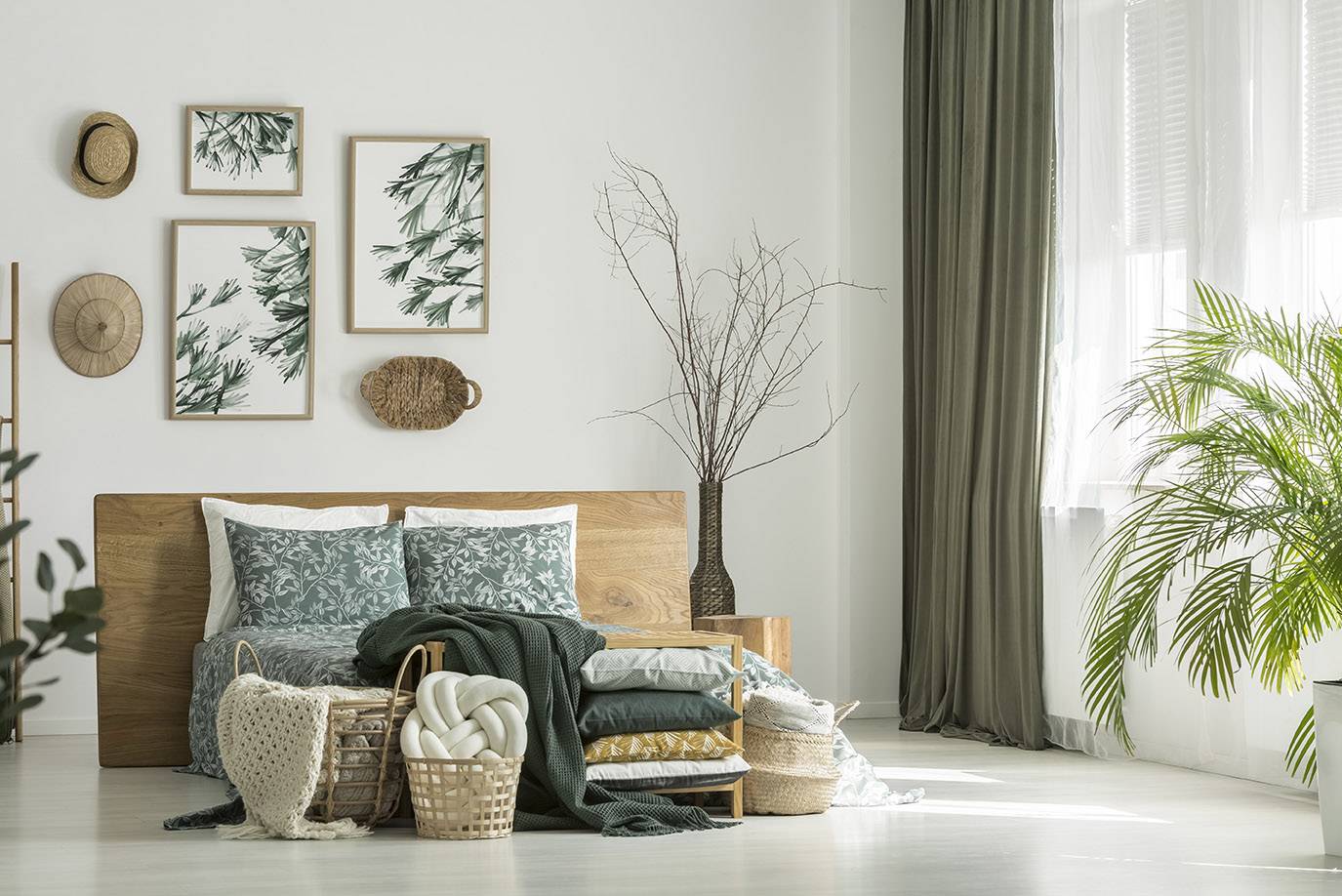 Если хотите, чтобы клетка в спальне смотрелась гармонично на обоях, не забудьте использовать данный орнамент в текстиле или в других аксессуарах.