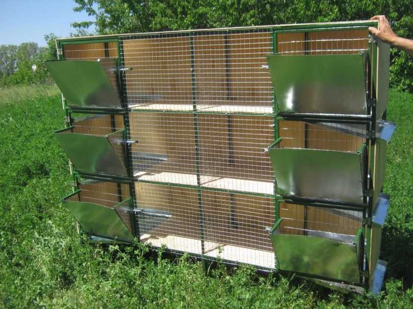 Популярностью у владельцев кроличьих ферм пользуются многоярусные клетки по чертежам Золотухина. Они имеют ряд преимуществ:
