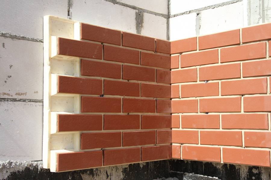 - Клинкерные утепленные панели. Состоят из нескольких слоев: клинкерный кирпич и термоизоляция. В качестве утеплителя выступает полипеностирол или пенополиуретан. Они монтируются на основу посредством крепежей.