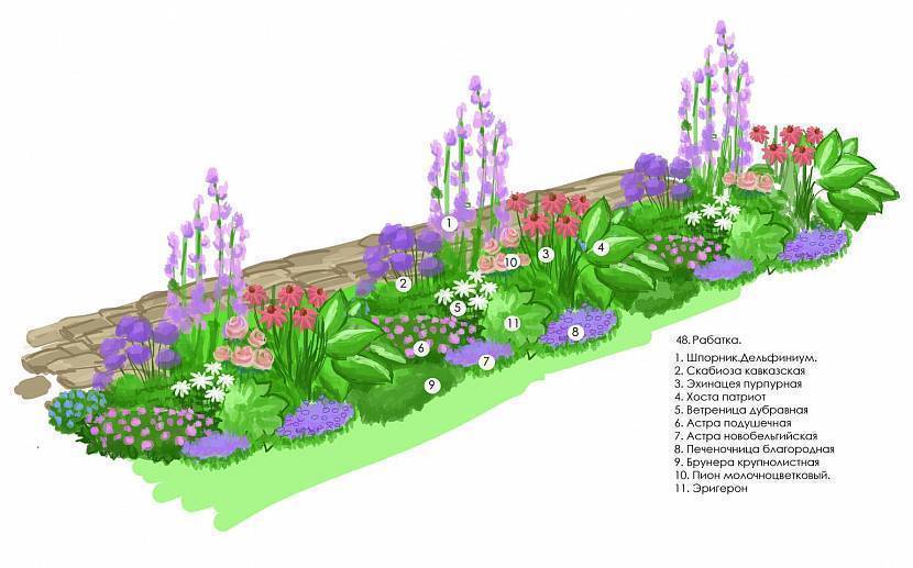 Длинная клумба с многолетникамиИсточник cveti-rasteniya.ru