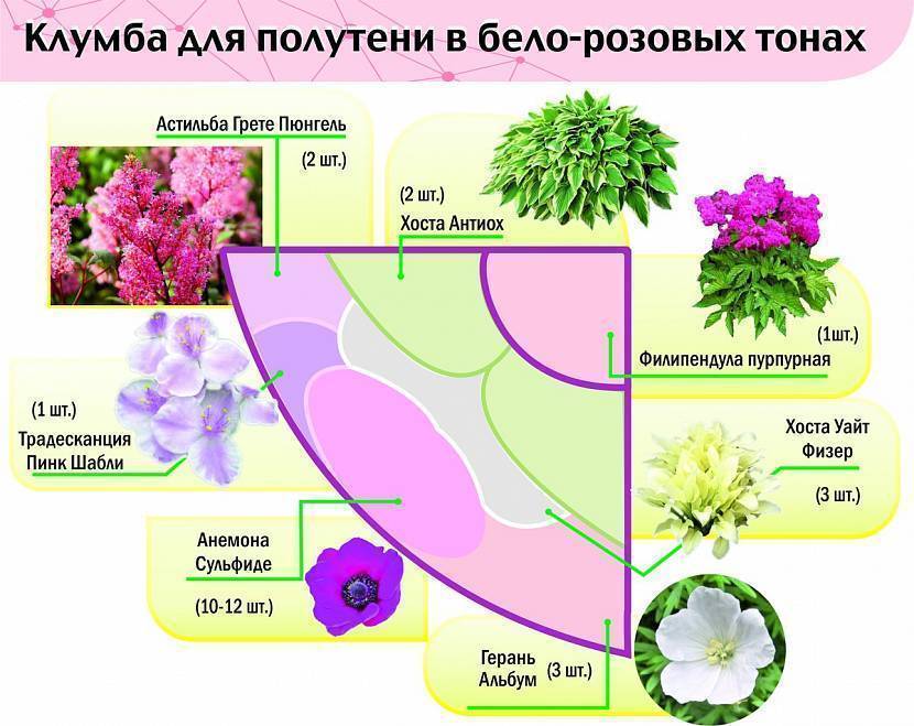 Если планируете высаживать растения в среднезатененной местности в клумбе треугольной формы, выберите для нее культуры: