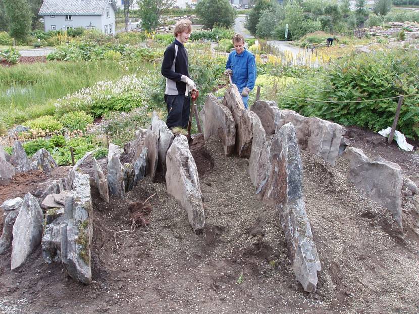 При обустройстве альпийской горки в стиле Чешская скалка, плоские камни выставляются в вертикальном положении. Для Террасного сада – в горизонтальном.
