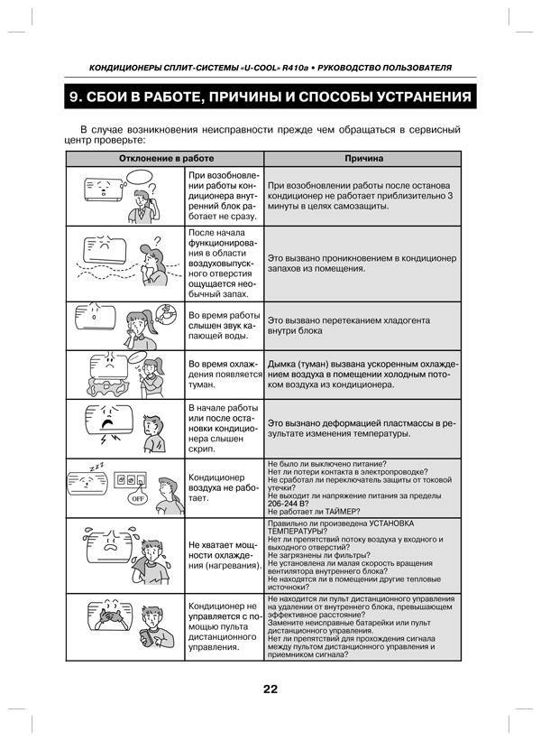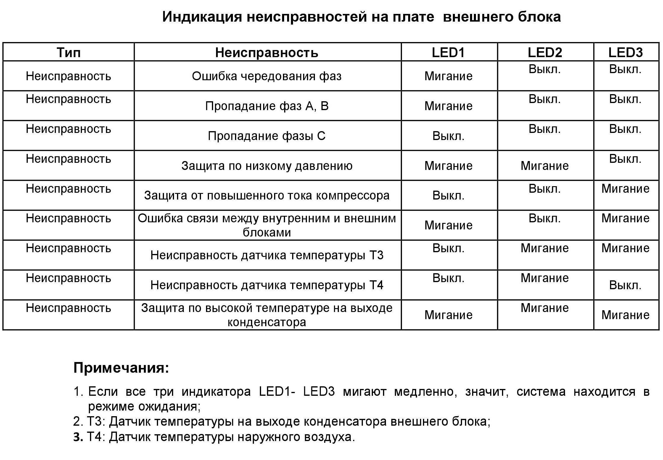 В случае серьезной поломки вся работа оборудования может быть заблокирована. Если поломка не влияет на работу системы, сообщение о неисправности будет продолжать мигать во время работы. Если кондиционер или сплит-система выявляет две или больше поломок, сначала индицируется неисправность с большим приоритетом, потом все остальные.