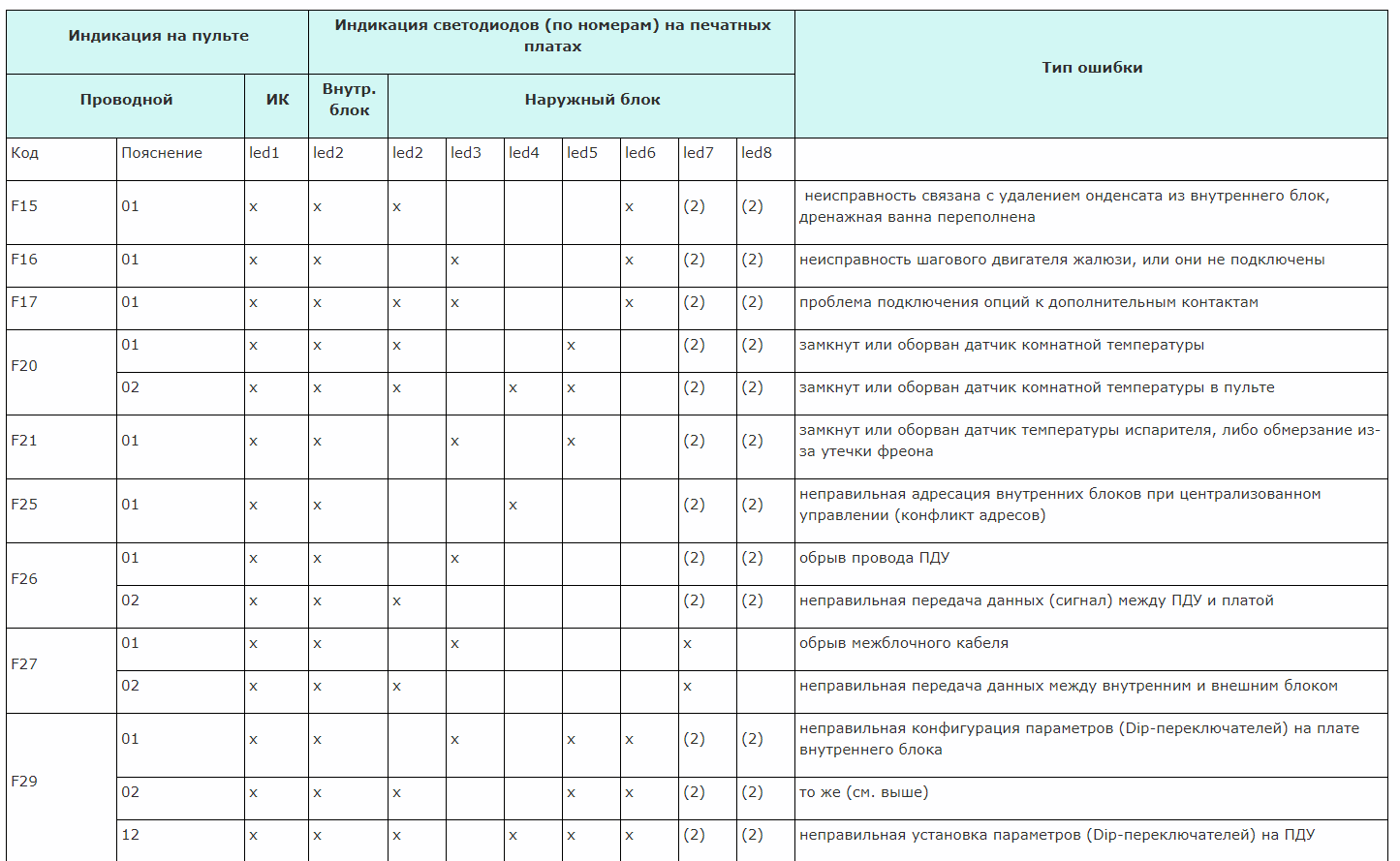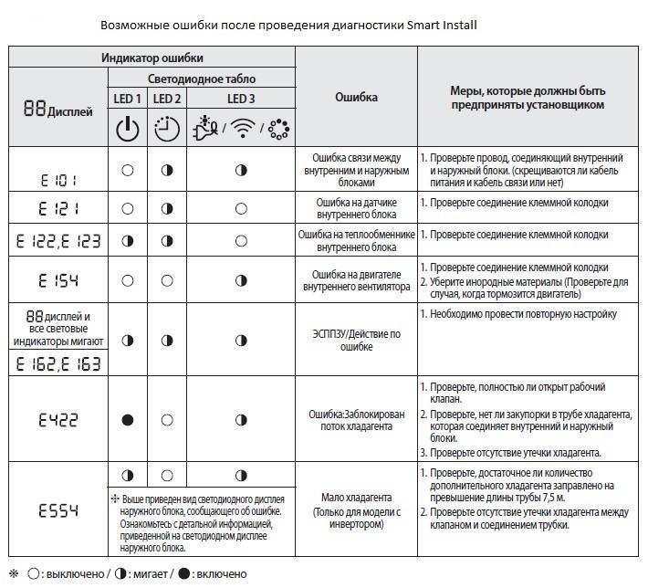 Для мультисплит систем (когда один внешний блок и несколько внутренних) необходимо посмотреть ошибки на каждом внутреннем блоке.
