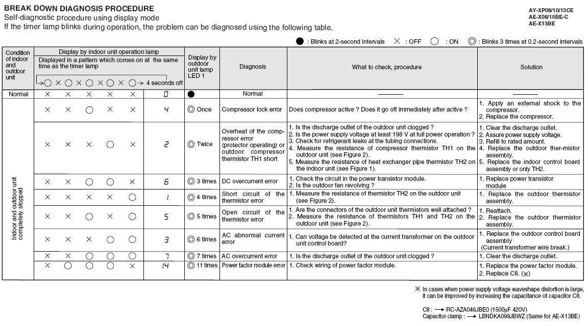 Расшифровка неисправностей кондиционеров Panasonic и их устранение