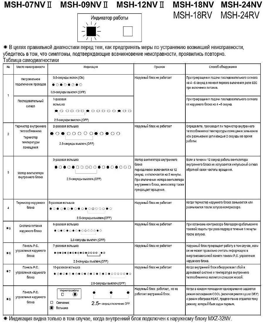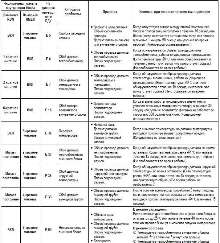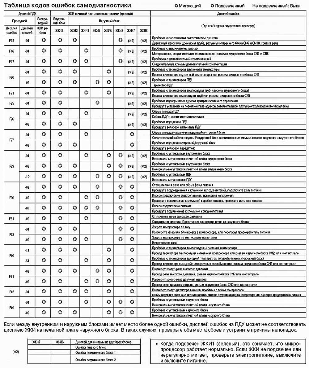 Коды ошибок кондиционеров panasonic