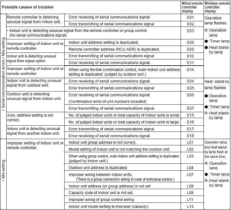 Следует помнить, что система управления и контроля присутствует в двух частях кондиционера. Поэтому, если возникли неполадки, следует опросить как внутренний, так и наружный блок и определить соответствующий код ошибки и требуемый ремонт.