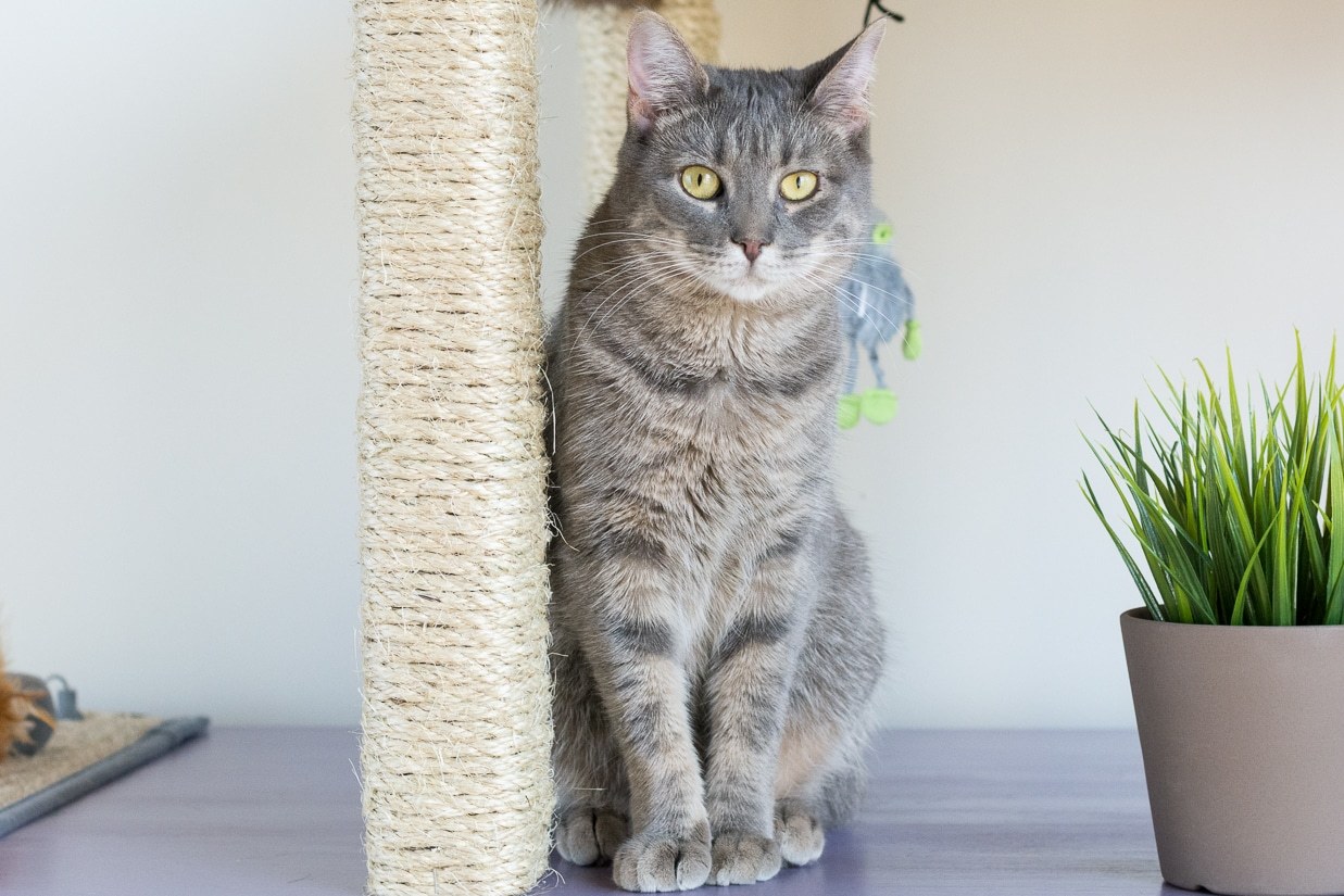 - При изготовлении вертикальных когтеточек позаботьтесь о надежном креплении площадки к столбику. Взрослая кошка — животное тяжелое. Будет неприятно обнаружить, что под ее весом конструкция начнет крениться в бок, грозя рухнуть на пол.