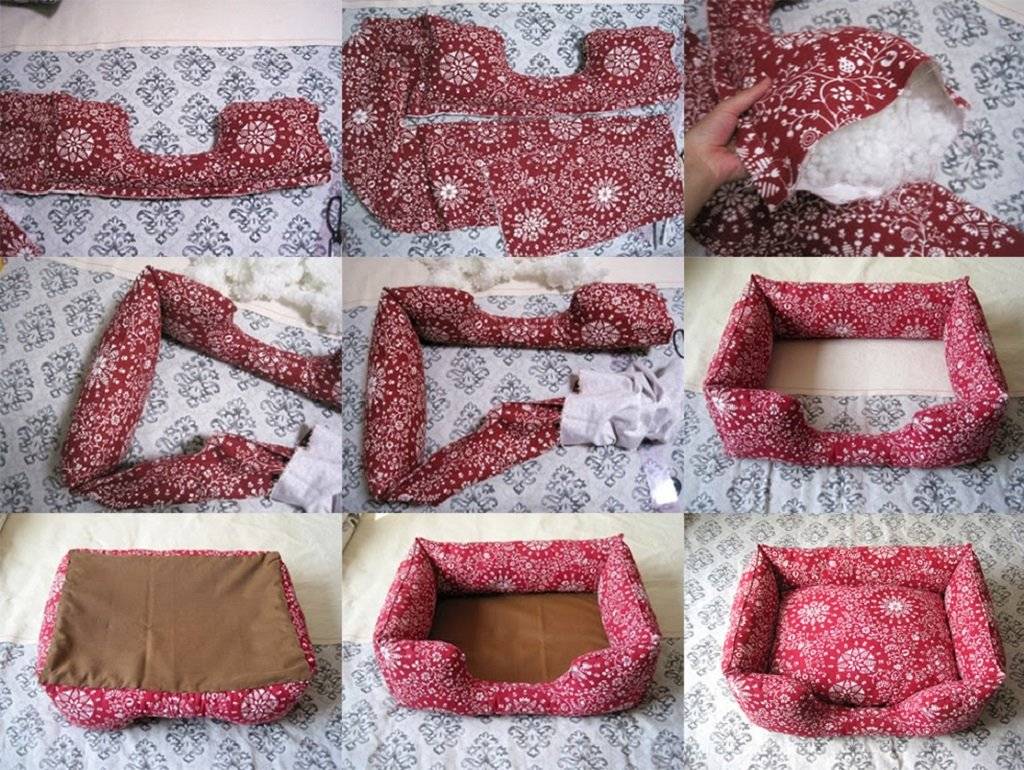 При желании можно оформить лежанку аппликациями или фурнитурой по теме – фигурки кошек, отпечатки лапок, бантики и тому подобное. Кстати, можно дополнительно использовать старый плед, внутри лежанки, чтобы питомцу было мягче. Но это уже на ваше усмотрение.