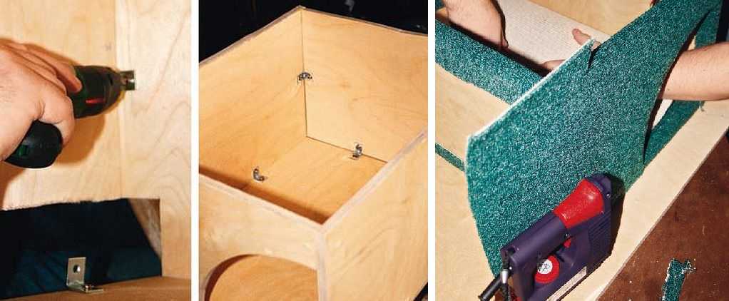 Перед установкой платформы «примеряем», по необходимости корректируя прорези. Поставив платформу горизонтально (используем строительный уровень) на нужном уровне, карандашом отмечаем где стоит платформа. По этой разметке потом устанавливаем уголки, так что отметки делаем четкие, со всех четырех сторон. Когда все платформы нормально устанавливаются, оббиваем их ковролином.