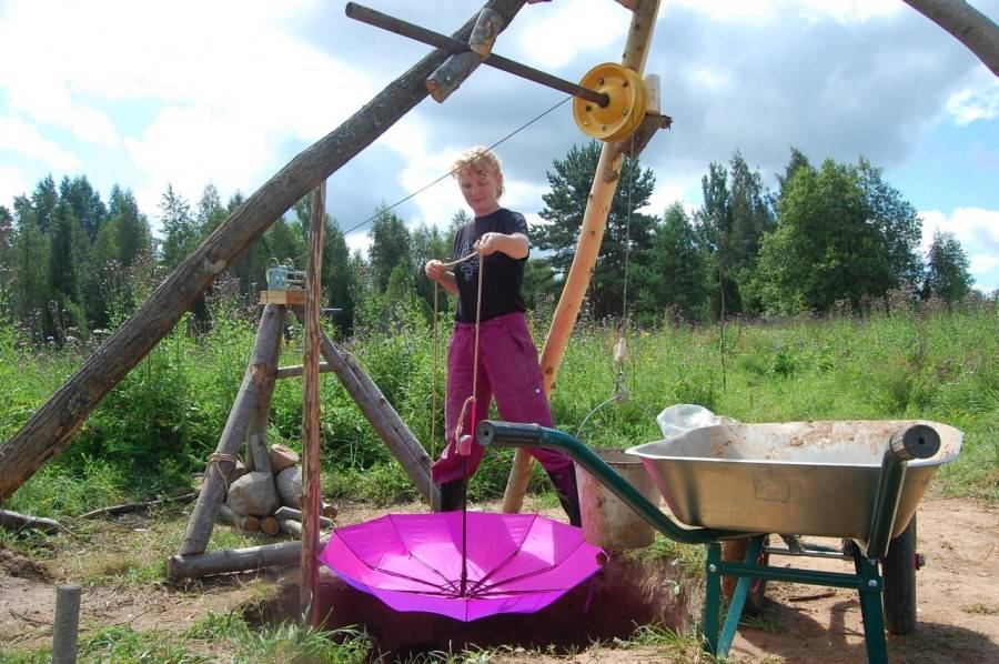 Бревно для ворота обязательно должно быть толстым, желательно дубовым, так как это порода отличается повышенной прочностью. Многие отказываются от монтажа ворота в пользу установки насоса, однако специалисты не рекомендуют этого делать: как и любая техника, насос может сломаться, в этом случае не повредит запасной вариант.