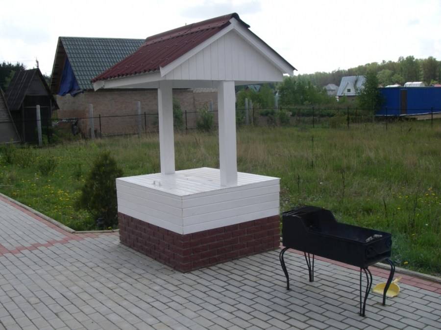 Для этого сверху целесообразно установить еще одно бетонное кольцо и облицевать снаружи декоративным материалом. Крышку можно подобрать в магазине или соорудить самостоятельно из пластика или дерева.