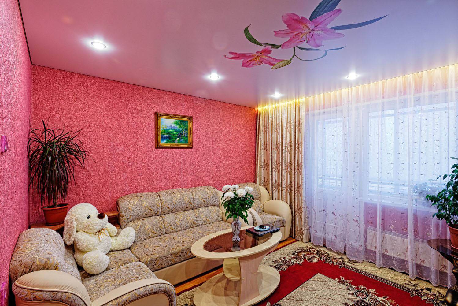 Кроме высоты учитываются и размеры комнаты, т. к. исполнение потолка отыгрывает прямую роль в визуальном восприятии пространства. В маленьких помещениях нецелесообразно использовать разноцветные конструкции или полотна с изображениями.