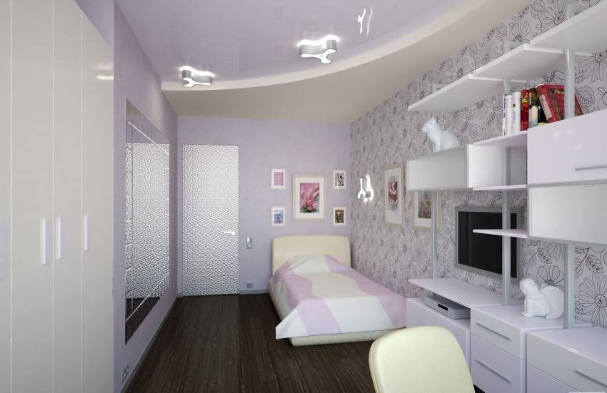 В комнате для девочки можно интересно оформить стены шелковой штукатуркой 2 видов, окрашенных в разные цвета. Блеск и нежная палитра цветов создаст сказочную и волшебную атмосферу.