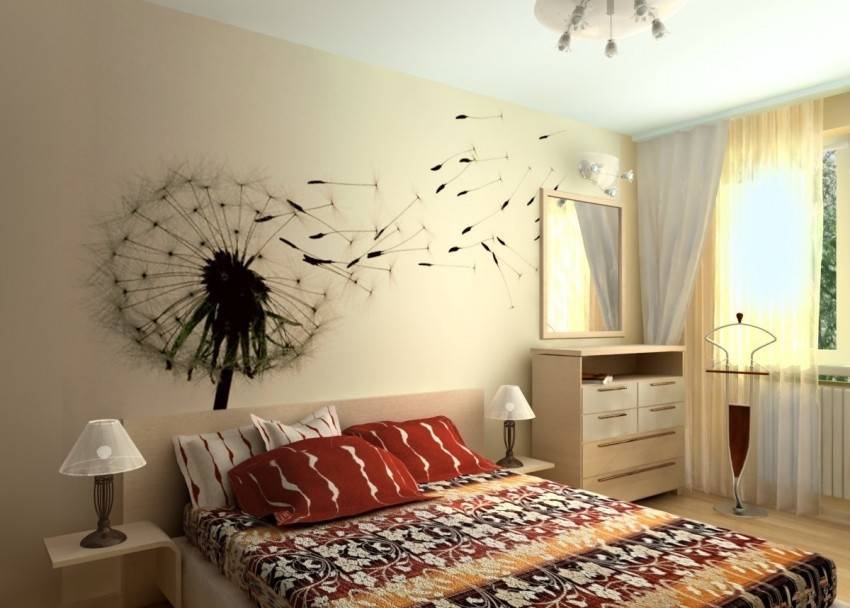 Акцентом может быть поверхность стены, расположенной параллельно месту для сна. Оригинальное решение – использование в качестве фона для дизайна: