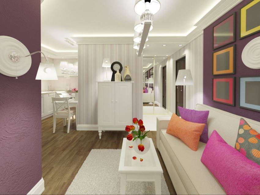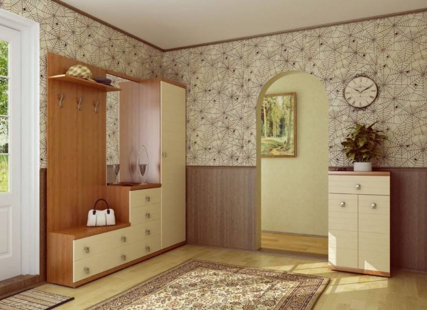 Контрастное сочетание 2-3 обоев визуально уменьшают помещение, поэтому для небольших комнат рационально использование тандема обоев с рисунком или без него, но не броских комбинаций.
