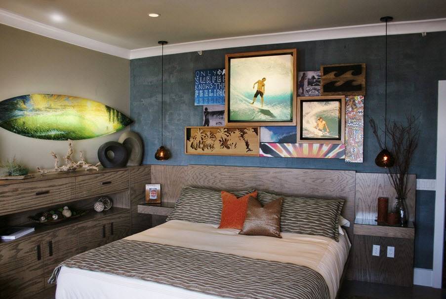 Для создания контраста можно повесить на стены тематические постеры или фотографии, но важно не переборщить с их количеством