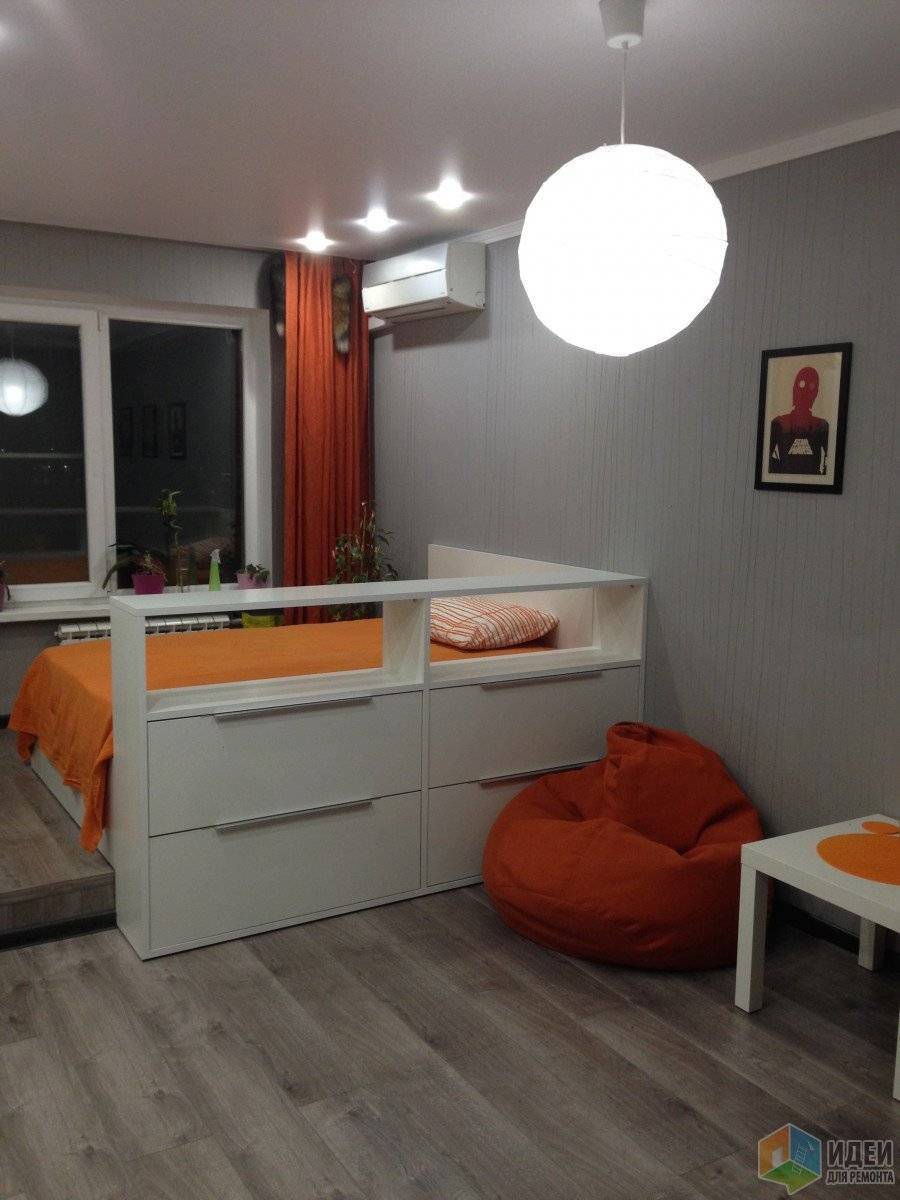 Невысокий шкаф – отличный вариант для зонирования и хранения одновременно.