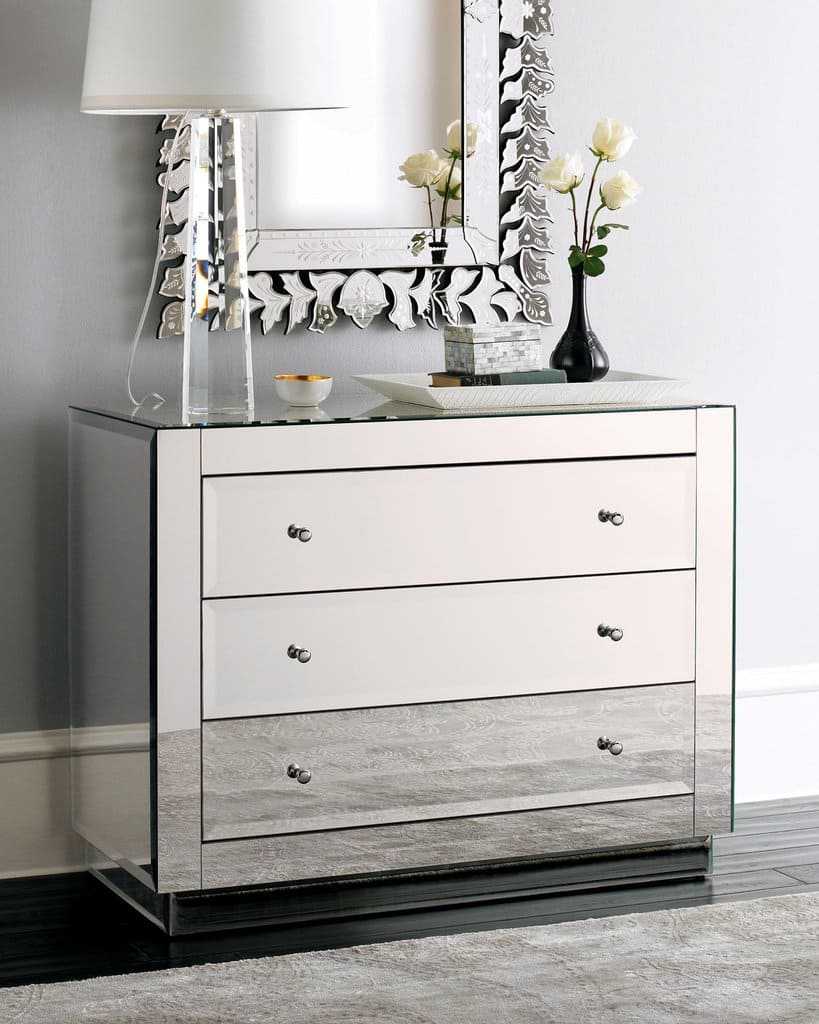 Комод светлого оттенка с зеркалом создаст ощущение утонченности и шика.