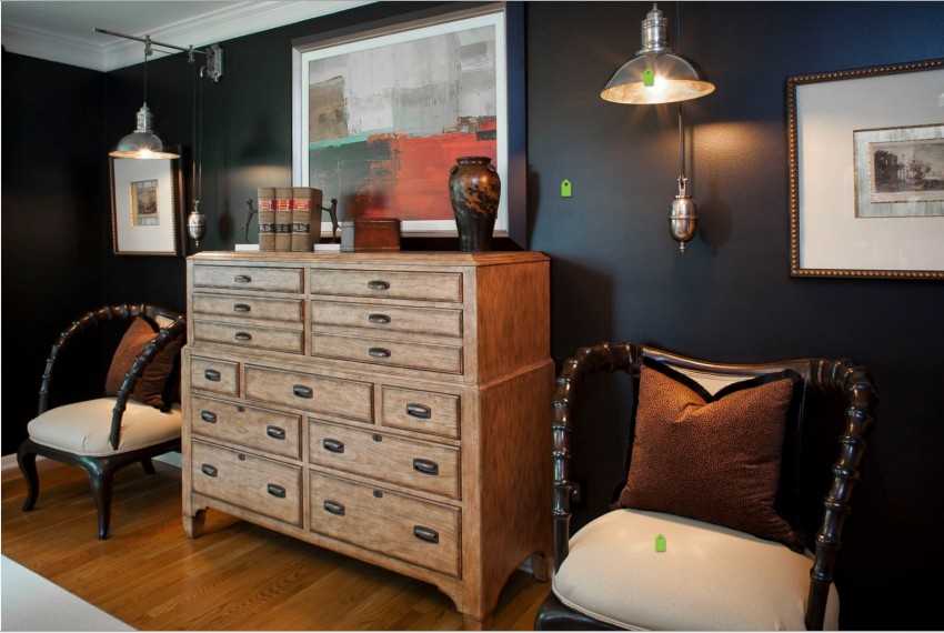 - Бюро. Множество мелких ящичков выглядит очень стильно и станет ярким акцентом в интерьере.