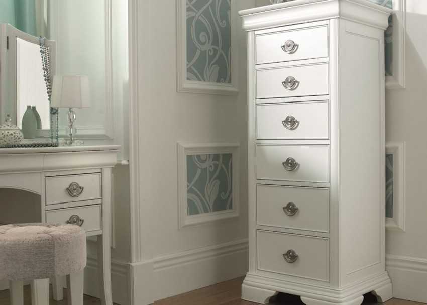 Высокие комоды очень удобны в маленьких, узких спальнях или помещениях с низкими потолками.