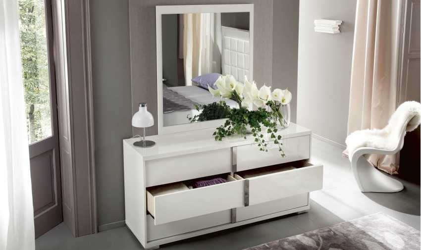 Прекрасным предметом мебели, дополняющим интерьер спальни, станет белый комод, который выглядит потрясающе и привносит в интерьер определенный класс и легкость. Комод для спальни, помимо своей декоративной функции, также станет идеальной консолью, на которой можно разместить декоративные элементы.