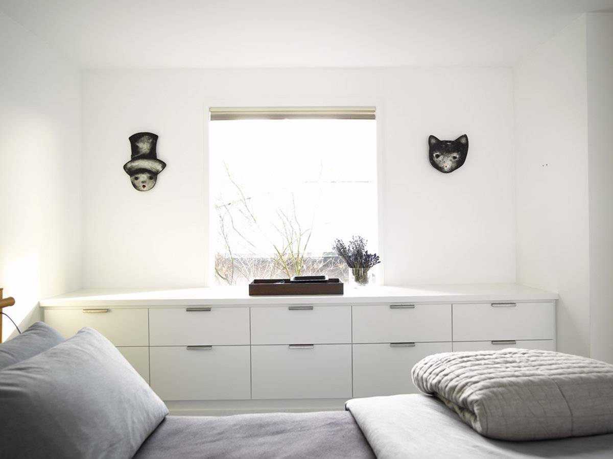 Узкий комод в спальню значительно сэкономит место. Если есть сомнения в плане вместимости, то можно добавить высоты или ширины. Стоит помнить, что его глубина не должна быть менее 30 см.