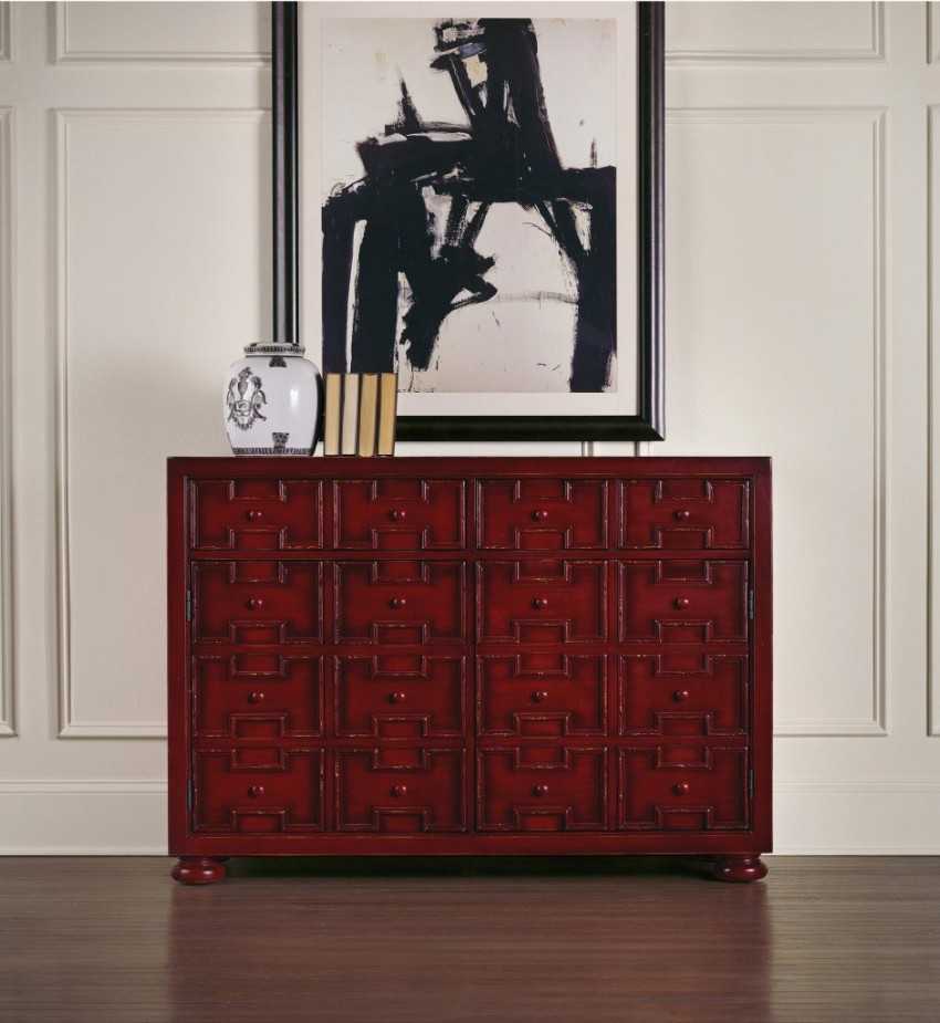 Принципиально высота и длина изделия ограничений не имеет. С пользовательской точки зрения комод, до верхнего ящика, которого нельзя дотянуться – идея неудачная. Но дизайнеры не раз предполагали и предлагают модели, напоминающие картотечный шкаф в библиотеке, но при этом стильные и оригинальные