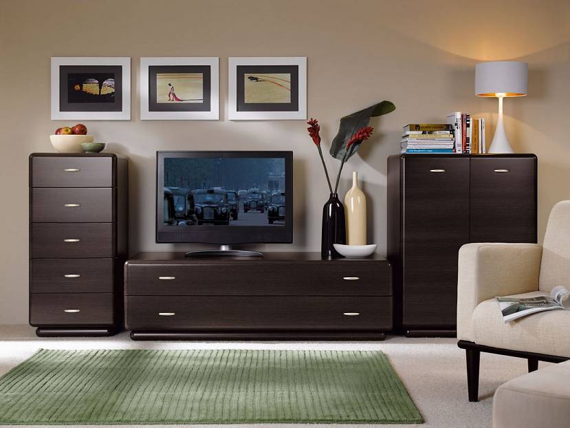Каждый догадается, что поставить на комод в гостиной. Туда так и просится телевизор. Вот почему, сегодня, тумбы подобного рода становятся частью небольшой мебельной горки.