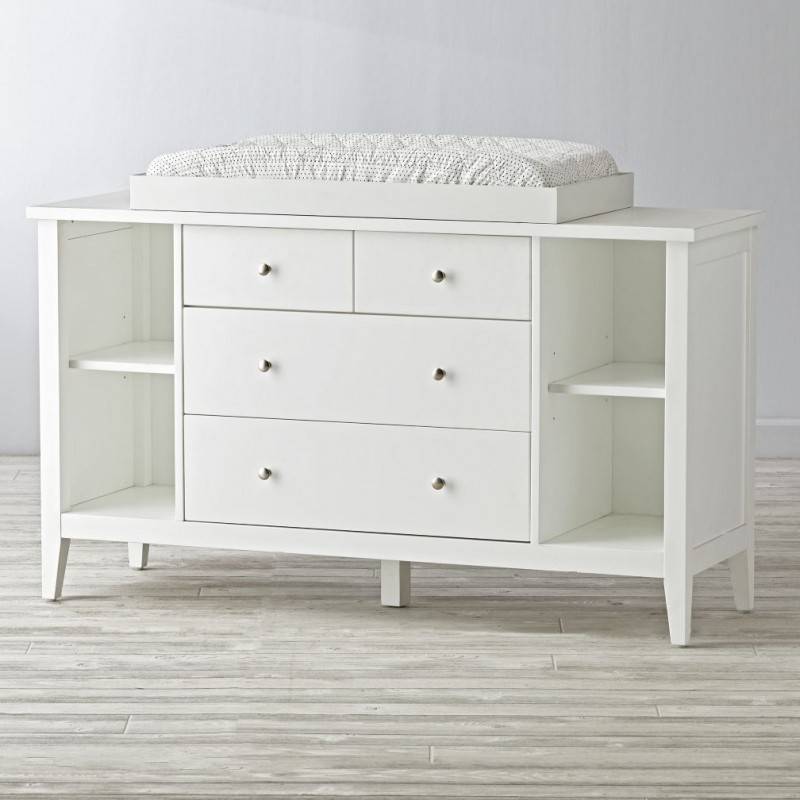 Можно выбрать модель с полками и открытыми нишами. На полки удобно расположить детскую косметику, а в нишу положить соски, погремушки, гигиенические салфетки и другие мелочи, которые должны быть под рукой и в легкой доступности.