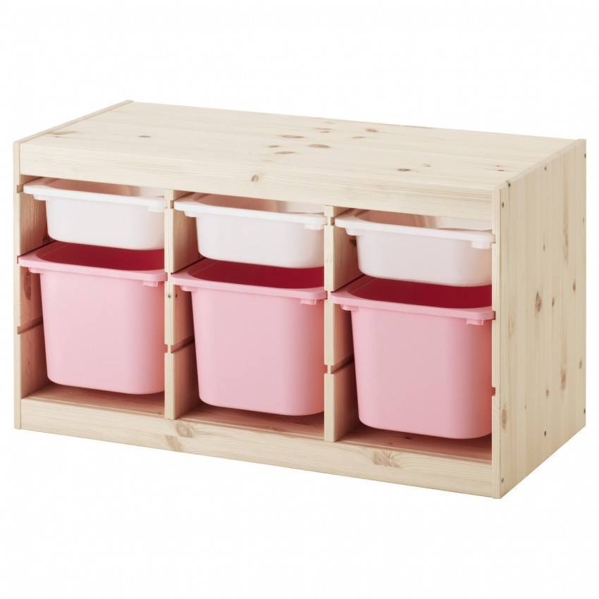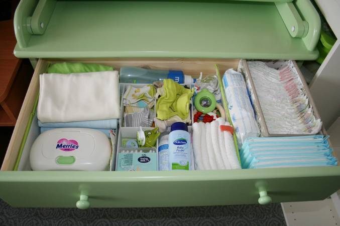 Основной системой хранения являются выдвижные ящики. Количество их может быть в среднем от 3 до 8. Большие, вместительные секции можно использовать для хранения одежды, пеленок и подгузников. В ящики меньшего размера размещают гигиенические принадлежности: ватные диски, палочки, пипетки и медицинские растворы: перекись, зеленку, масла.